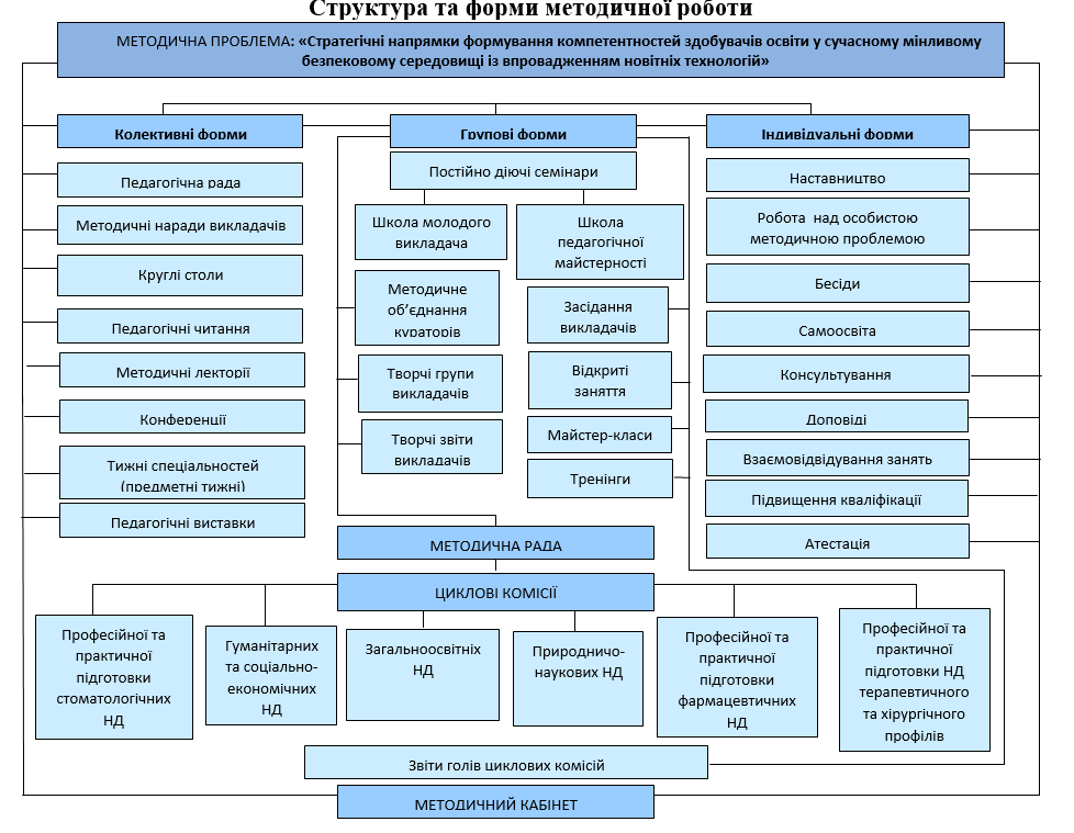 Методична робота в коледжі є складовою частиною освітнього процесу. Це систематична діяльність педагогічного колективу, спрямована на: